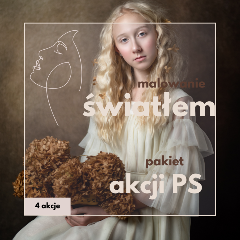 Zestaw akcji do malowania światłem to część kolekcji akcji do retuszu portretu artystycznego. Można zakupić samą akcję, lub cały pakiet.